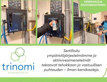 Trinomi oli ensimmäinen lahtelainen yksityinen siivousyritys, joka lanseerasi puhdasvesisiivouspalvelun helmikuussa 2021. Puhdasvesisiivous on ekologinen siivous, jonka valitsemalla pienenee yrityksen hiilijalanjälki.